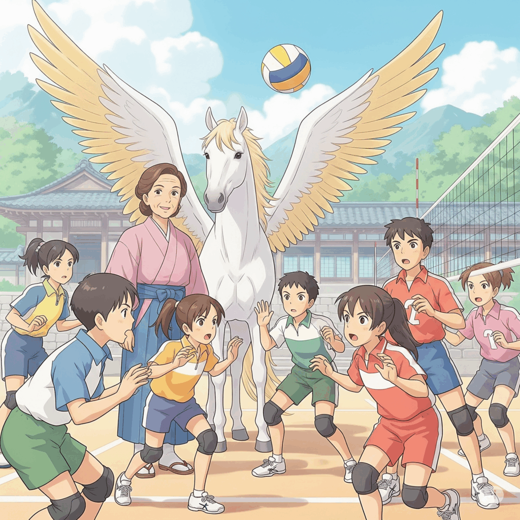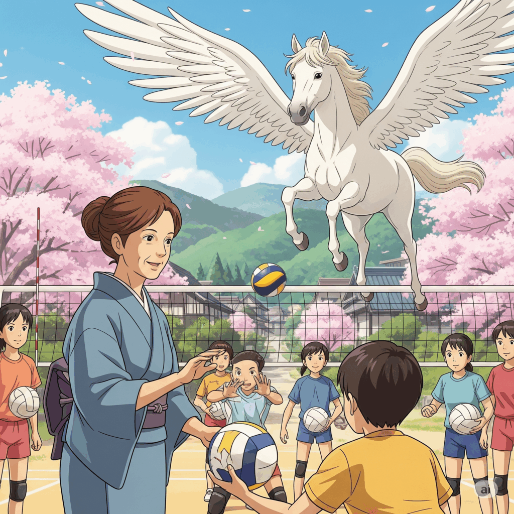 ペガサスの練習では、わざと弱いトスを作って、チームでどうつなぐかを練習します。